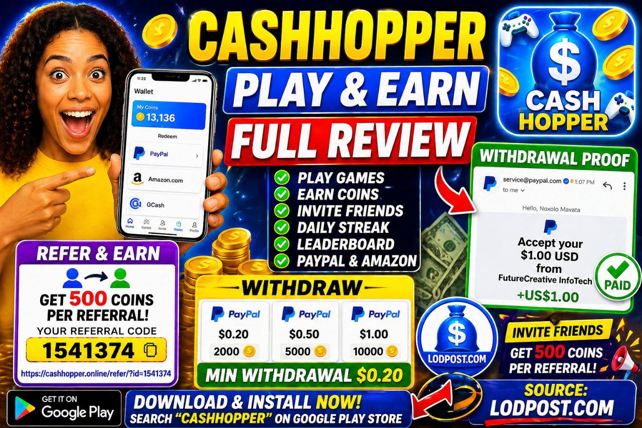 I recently came across an app called CashHopper – Play & Earn, and honestly, at first glance, it looked like one of those typical “play games and earn money” apps that flood social media these days. I kept seeing people posting referral links everywhere—Facebook groups, WhatsApp, even Telegram—with claims like “withdraw instantly,” “no referral needed,” and “minimum withdrawal $0.20.”