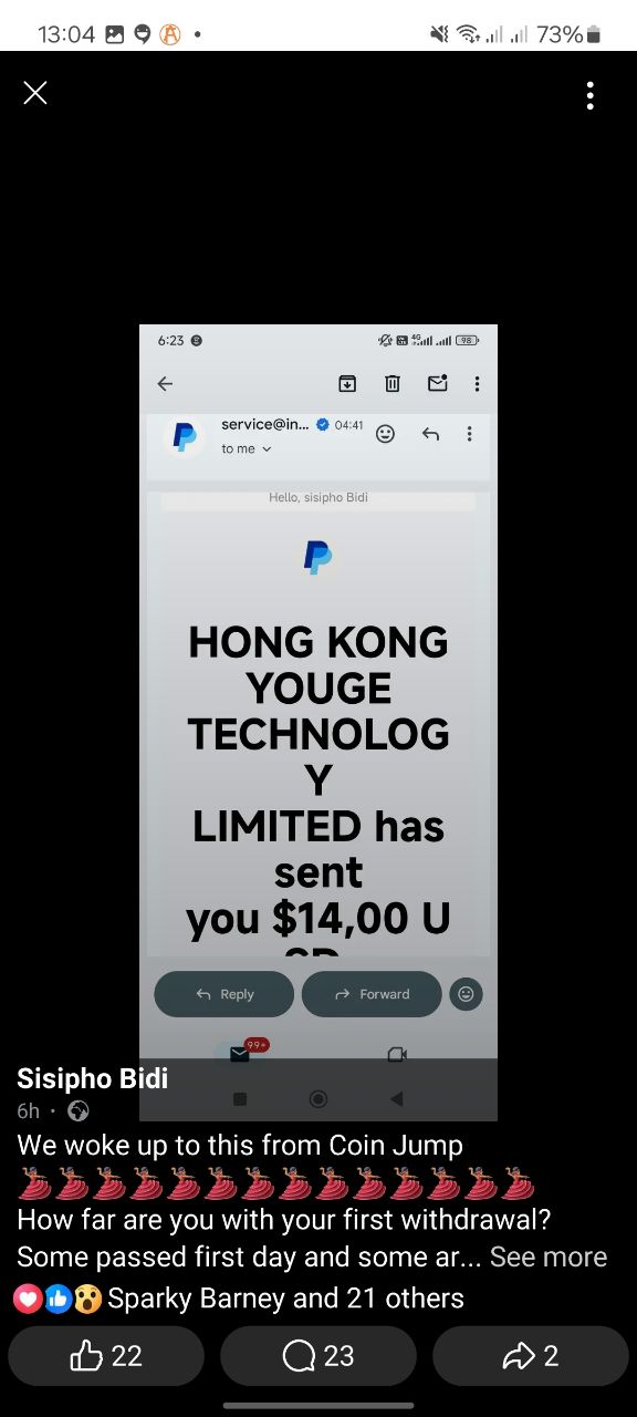 And even an email screenshot claiming someone received $14.00 USD from a company called “Hong Kong Youge Technology Limited.”