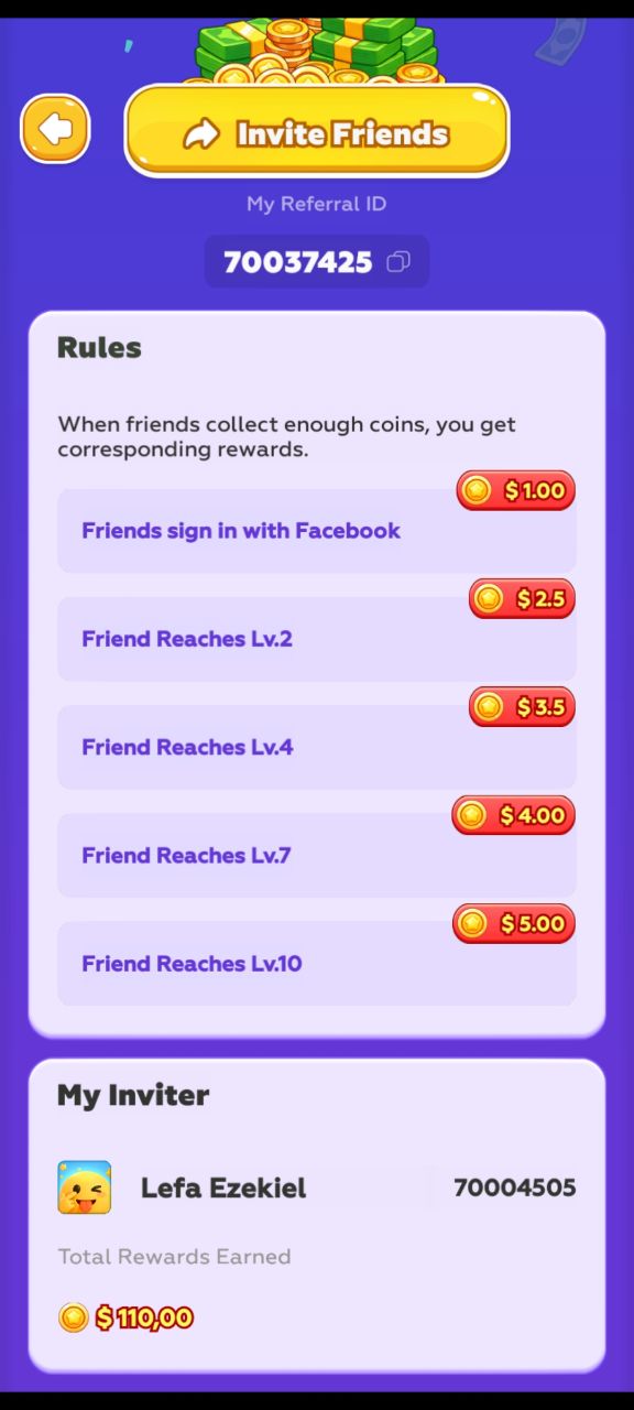 - $15 invite earnings