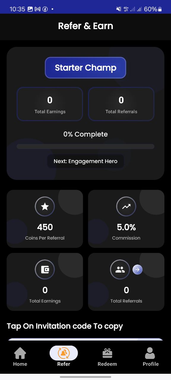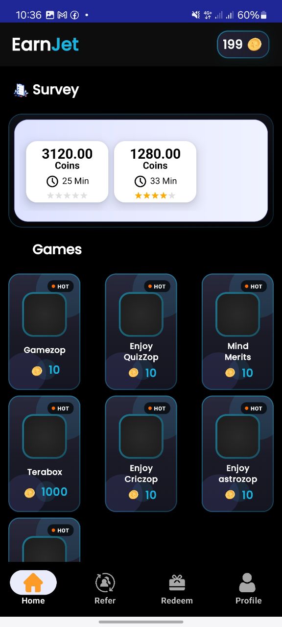 Inside the app, everything revolves around coins. You don’t earn real money directly — instead: