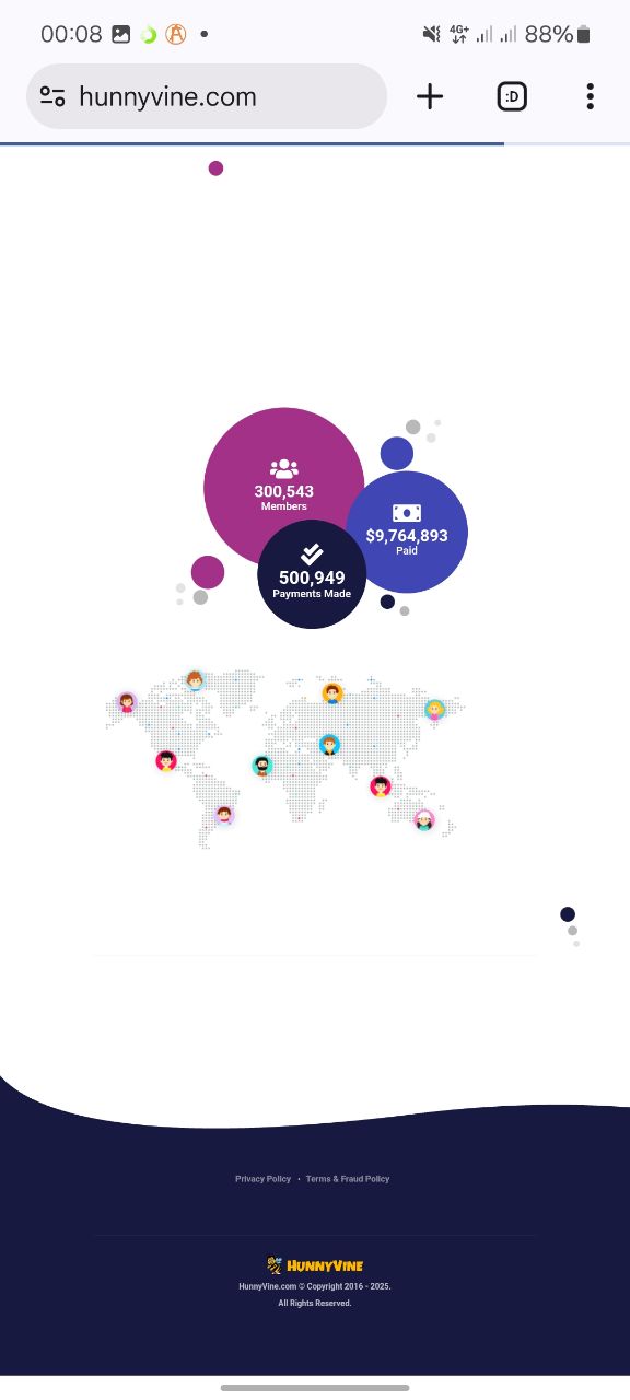 Based on my experience and past reviews of Hunny sites, HunnyVine is not legit. It is just another scam referral site designed to collect free traffic and user data without ever paying out.