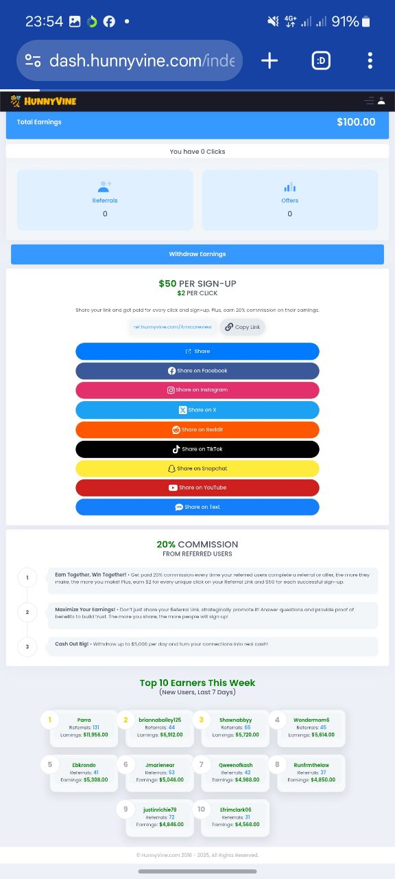 Welcome to my detailed review of HunnyVine.com (HunnyVine) – a new platform claiming to be the biggest referral-based earning website in 2025. Like many others before it (HunnyTank, HunnyBand, HunnyBucks, HunnyCash, HunnyStack, HunnyMe.co, BuzzBread, RustyBumble, BumbleFriends, MessengerFriends, YuboFriends, etc.), HunnyVine promises quick riches, $100 sign-up bonuses, and high referral payouts. But is it real or just another scam clone? Let’s dig in.