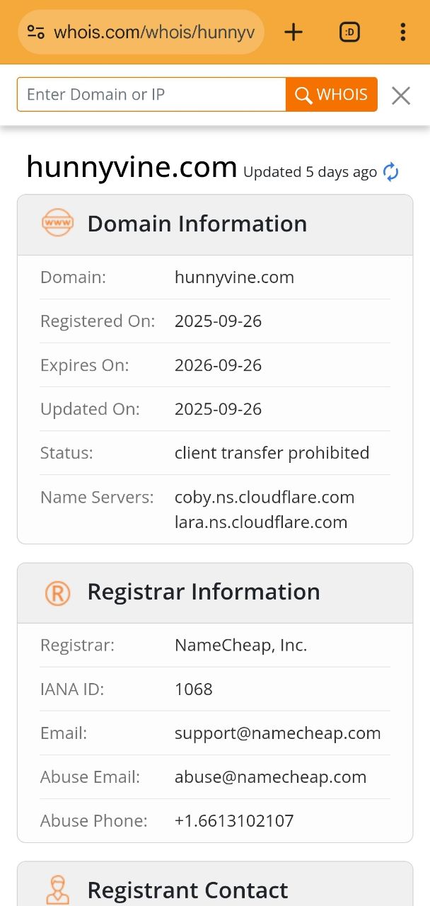 According to WHOIS records, HunnyVine.com was registered on September 26, 2025 and launched shortly after on September 27, 2025. In less than a week, it began spreading on Facebook, TikTok, and Instagram, pushed heavily by referral links.