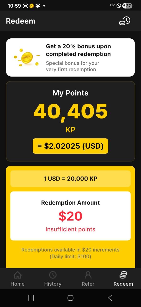 - Conversion clearly shown: 👉 20,000 KP = $1