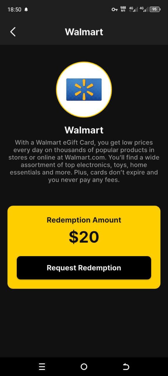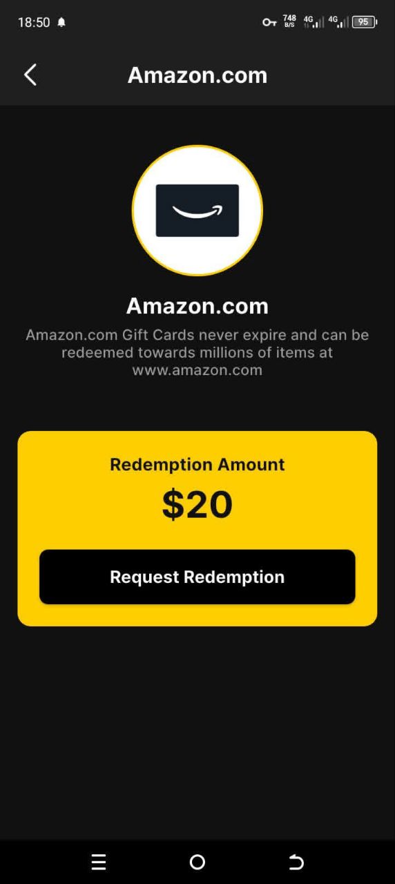 - “Cash out $20 to Amazon or Visa”