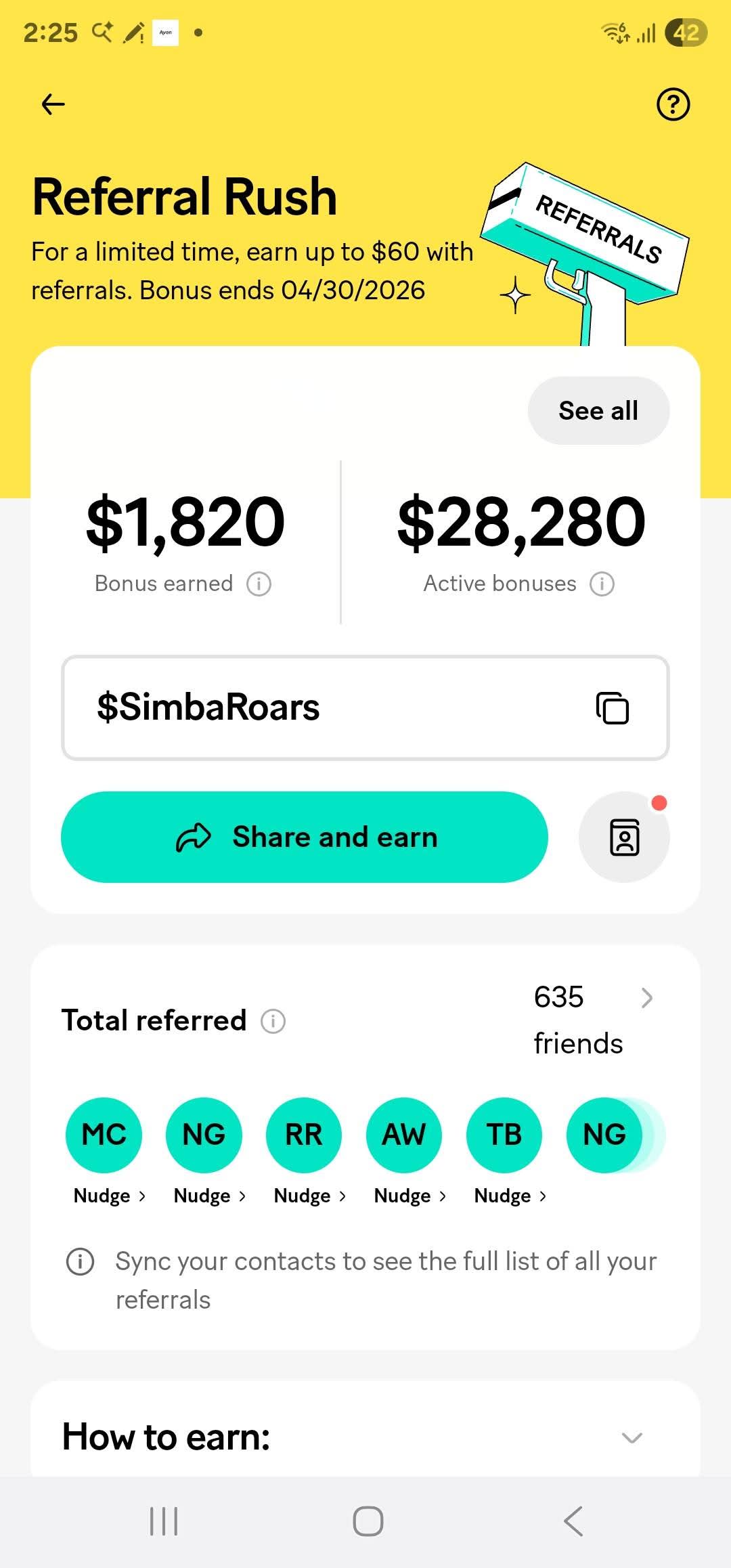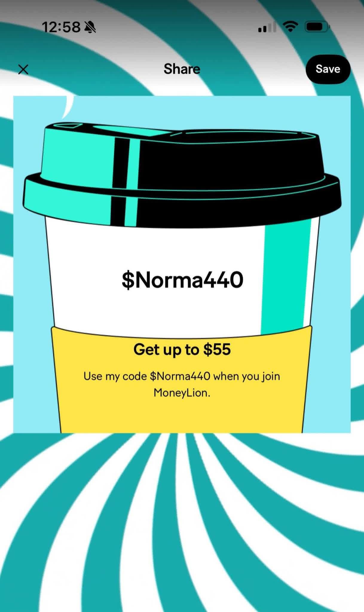 - Referral code ($SimbaRoars, $Norma440, etc.)