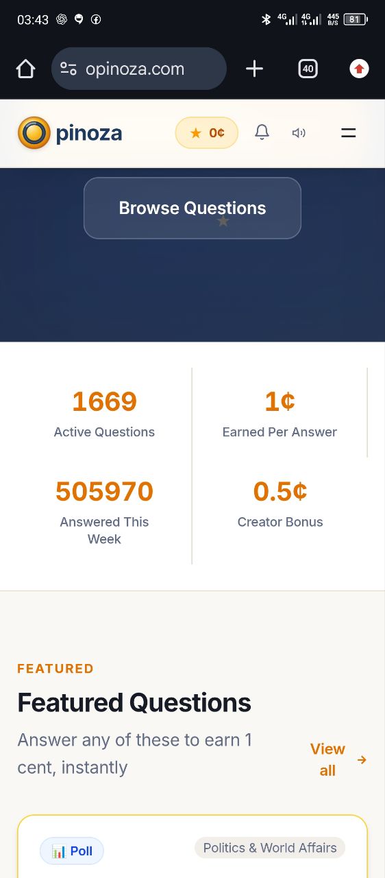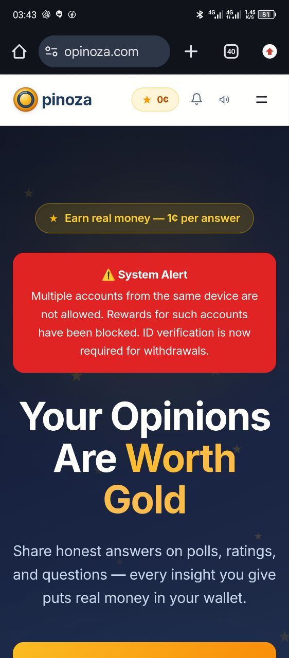 From what I saw on the platform, Opinoza (opinoza.com) is a website that claims to pay users for: