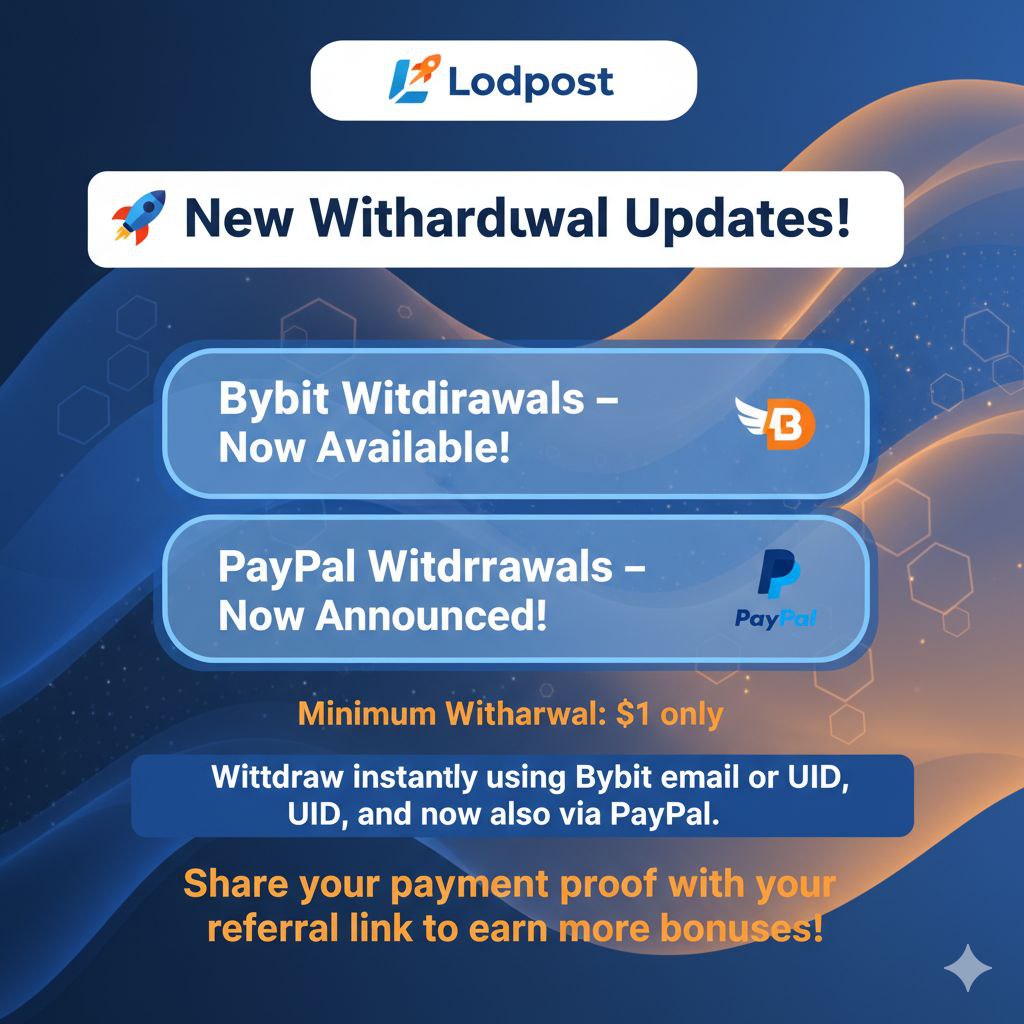 π° Remember: Lodpost’s referral program gives you 20% lifetime commission from your referrals’ earnings. That means the more people you invite, the more you earn forever. Plus, every new user gets a $0.25 sign-up bonus and can withdraw once they reach just $10 minimum.