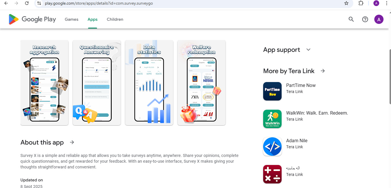 One of the biggest red flags is that Survey X has no transparent CEO, developer, or registered company details listed anywhere. Legitimate survey companies like Swagbucks or Toluna proudly share their corporate background. Survey X hides behind anonymity, which is a common trait of scam apps.