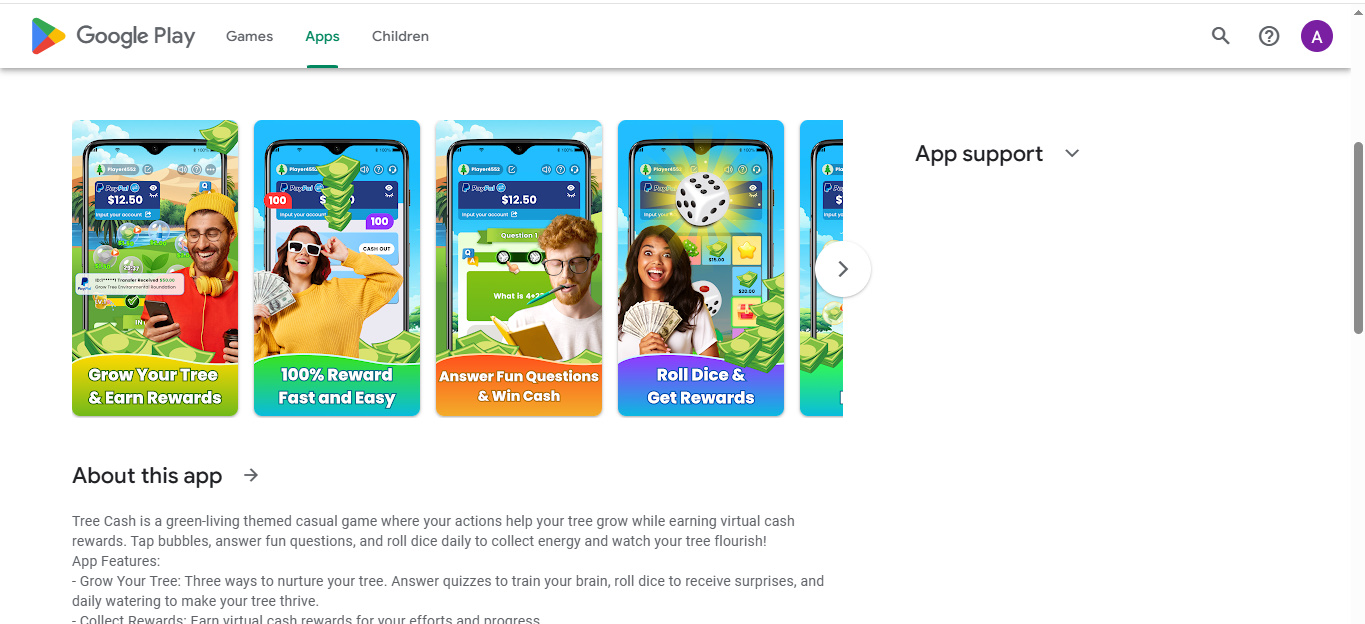 Tree cash: easy earn markets itself as a “tree planting / tree-growing” rewards app. Users “plant” and nurture virtual trees, complete microtasks (watch ads, invite friends) and supposedly earn dollars credited to an in-app balance. At certain thresholds you can request withdrawal via PayPal or other methods. It’s positioned as a freemium rewards game that combines casual gameplay with small-money payouts.