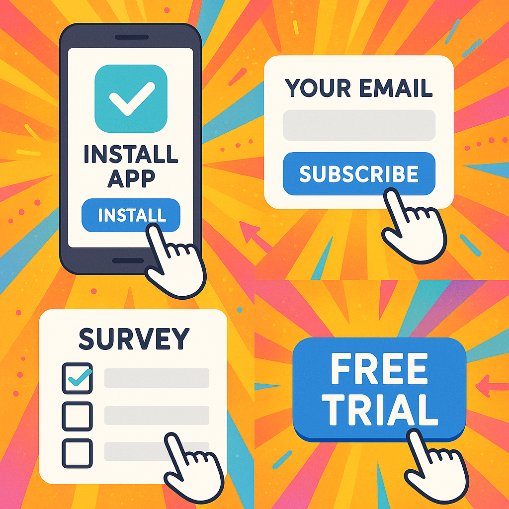 Users download and open an app. These offers work well on mobile platforms like TikTok or Instagram.