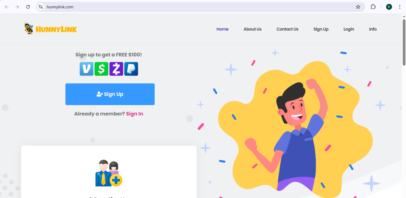 ❌ Hunnylink.com is not legit. It’s a scam referral site using fake statistics and deceptive bonuses.