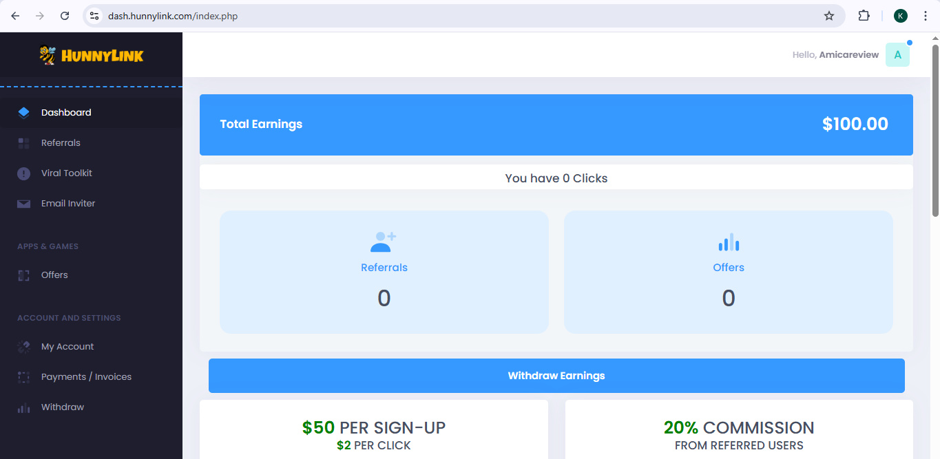 Hunnylink.com (or simply Hunnylink) is a referral-based earning website that promises quick cash for completing offers, playing games, watching ads, and inviting new users.