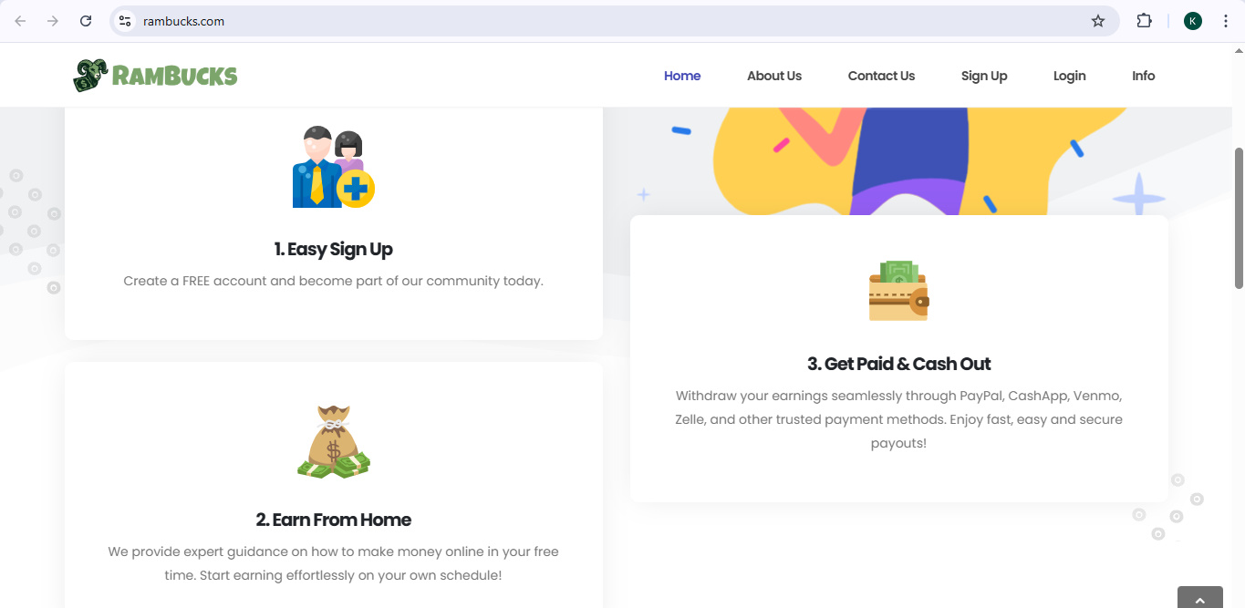 Unrealistic Earning Promises:Ā Earning $50 per sign-up and $2 per click is an unsustainable business model. There's no clear explanation of how Rambucks generates the revenue to pay out these enormous sums.