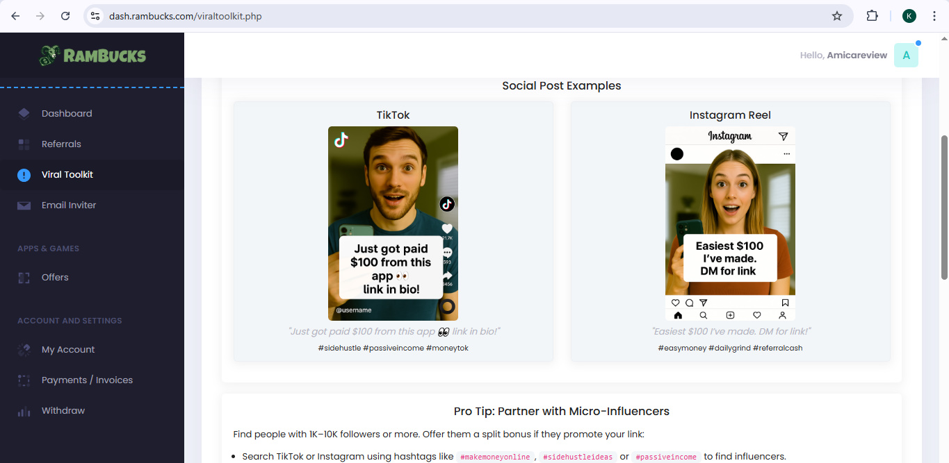 Viral Toolkit:Ā This is the heart of the platformāa set of marketing materials and guides to help you promote your referral link.