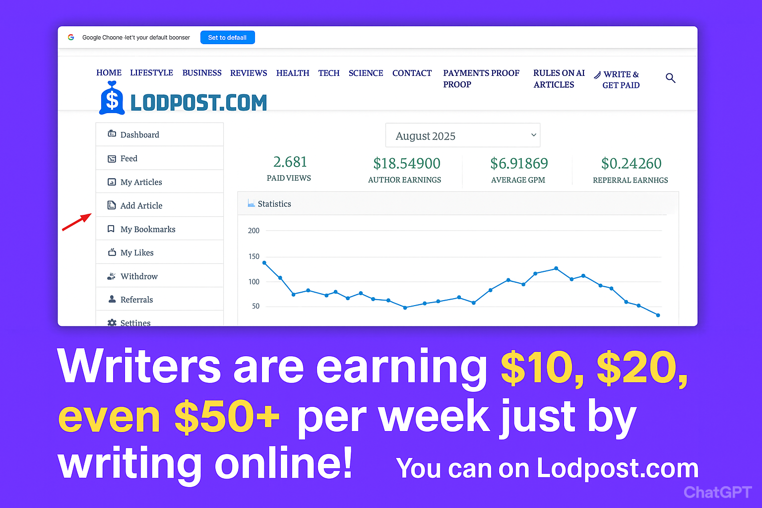 Lodpost is a fully legitimate platform where earnings are calculated transparently through CPM (Cost per 1,000 views). Payments are verified and processed reliably.