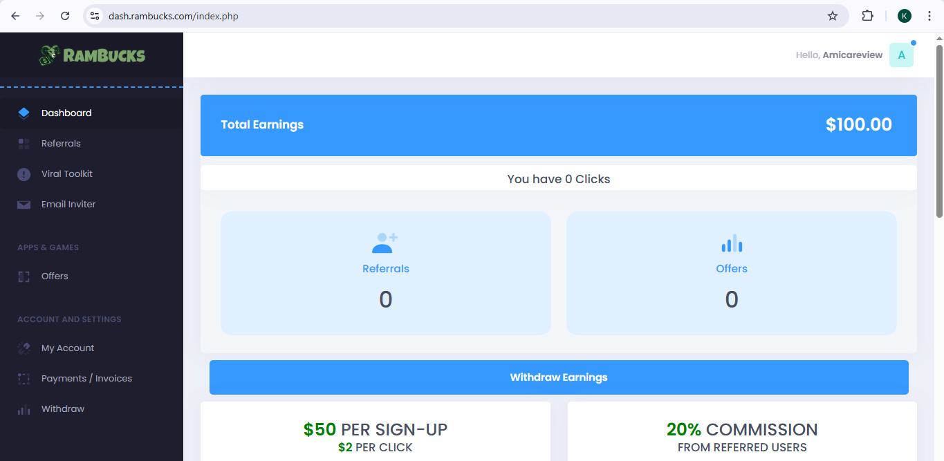 At first glance, Rambucks looks like an easy online income source — a way to make money from home by sharing referral links, playing games, or completing simple tasks.